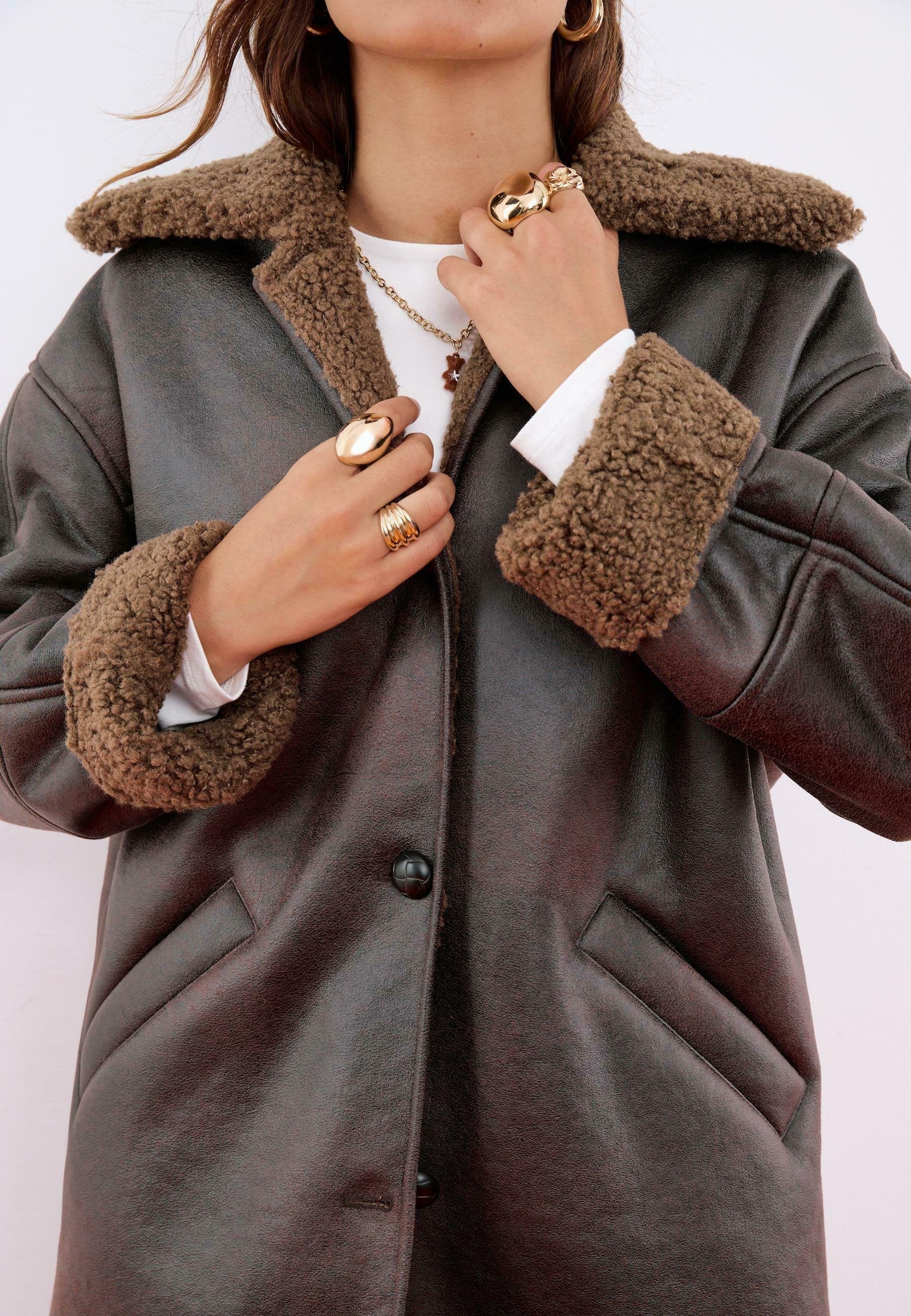 Stradivarius OVERSIZE DOUBLE-FACED WITH BUTTONS - Manteau court - dark brown pour 75,99 € (2025-12-17) Livraison gratuite sur la plupart des commandes*