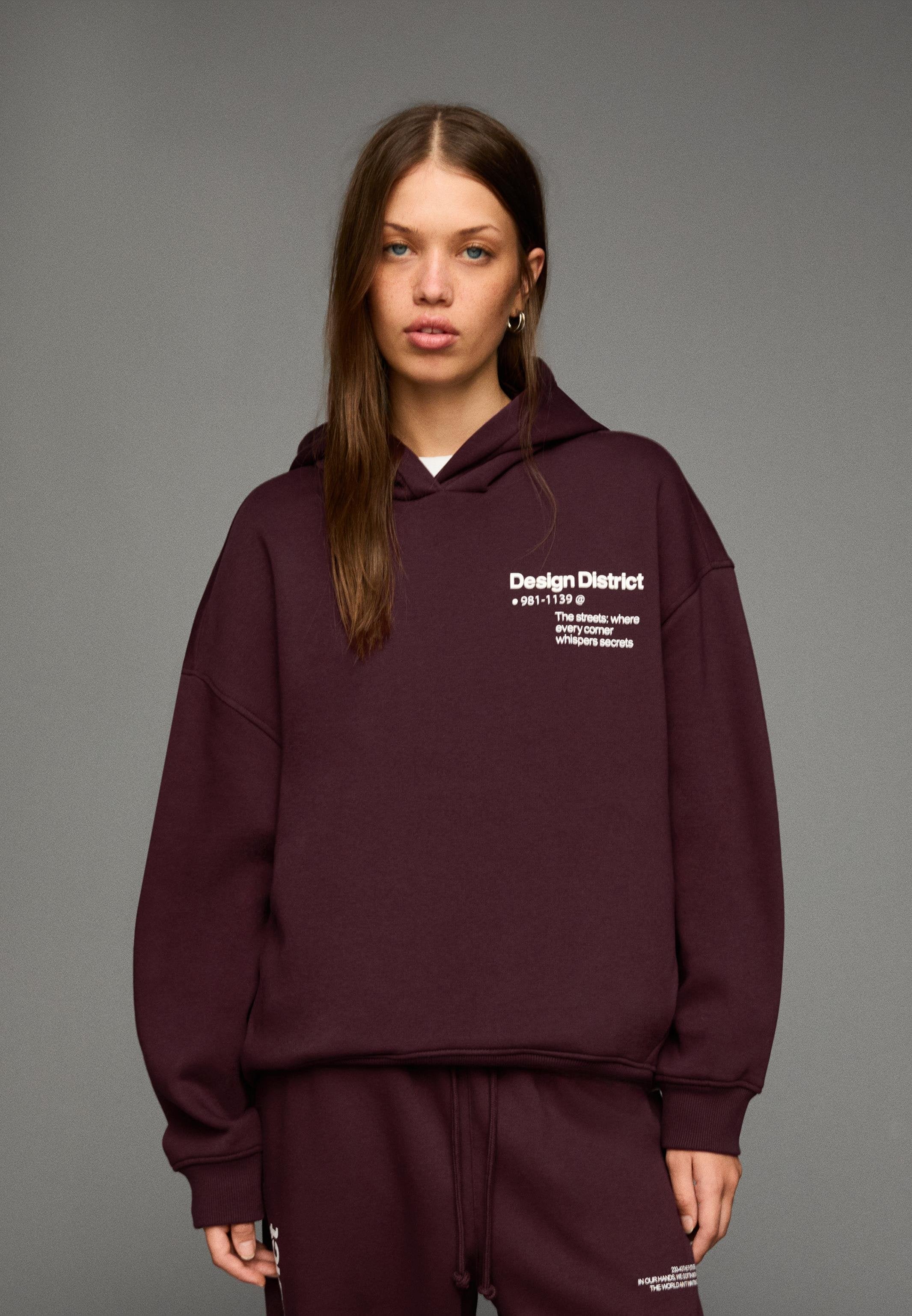 Bershka PRINTED - Sweat à capuche - bordeaux pour 32,99 € (2025-12-17) Livraison gratuite sur la plupart des commandes*